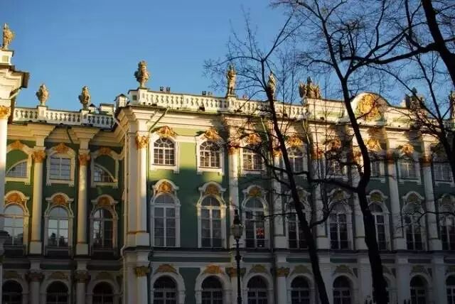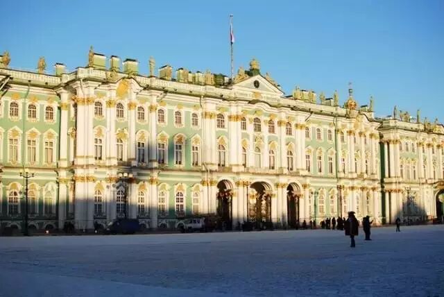 阳光打在冬宫的墙壁上,金灿灿,极尽奢华