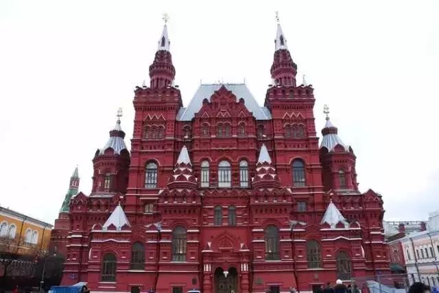 国家历史博物馆位于红场的北面,这座红砖银顶的俄式建筑已经屹立了100多年,是雪景图里面不可缺少的一部分